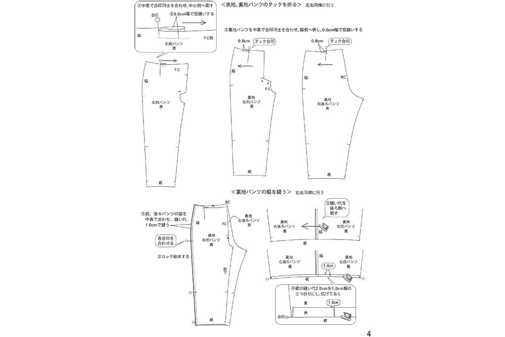 P2502イージーワイドテーパードパンツ説明書4ページにロック図が抜けておりました。次のページでロック図とテキストがありますが、このページにもロック図を載せるべきでした。
