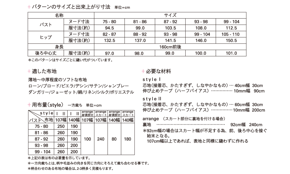 ●この商品は、ネット販売しておりますパターンと違い、1~3枚の紙に複数のサイズが印刷された実物大のパターンです。お客様ご自身でサイズを決定して頂き、、パターンをカットしてご使用下さい。