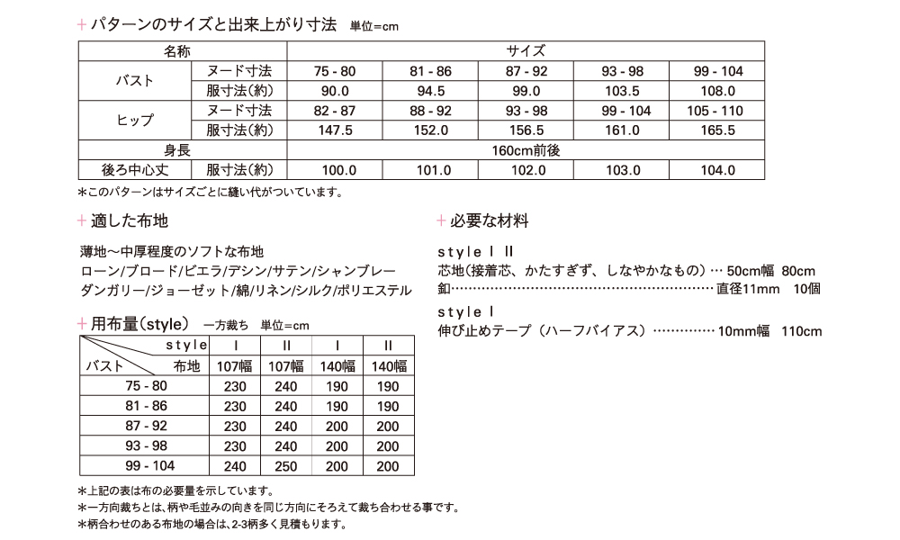 ●この商品は、ネット販売しておりますパターンと違い、1~3枚の紙に複数のサイズが印刷された実物大のパターンです。お客様ご自身でサイズを決定して頂き、、パターンをカットしてご使用下さい。