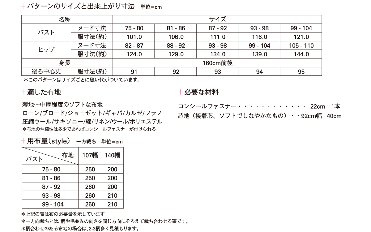 ●この商品は、ネット販売しておりますパターンと違い、1~3枚の紙に複数のサイズが印刷された実物大のパターンです。お客様ご自身でサイズを決定して頂き、、パターンをカットしてご使用下さい。