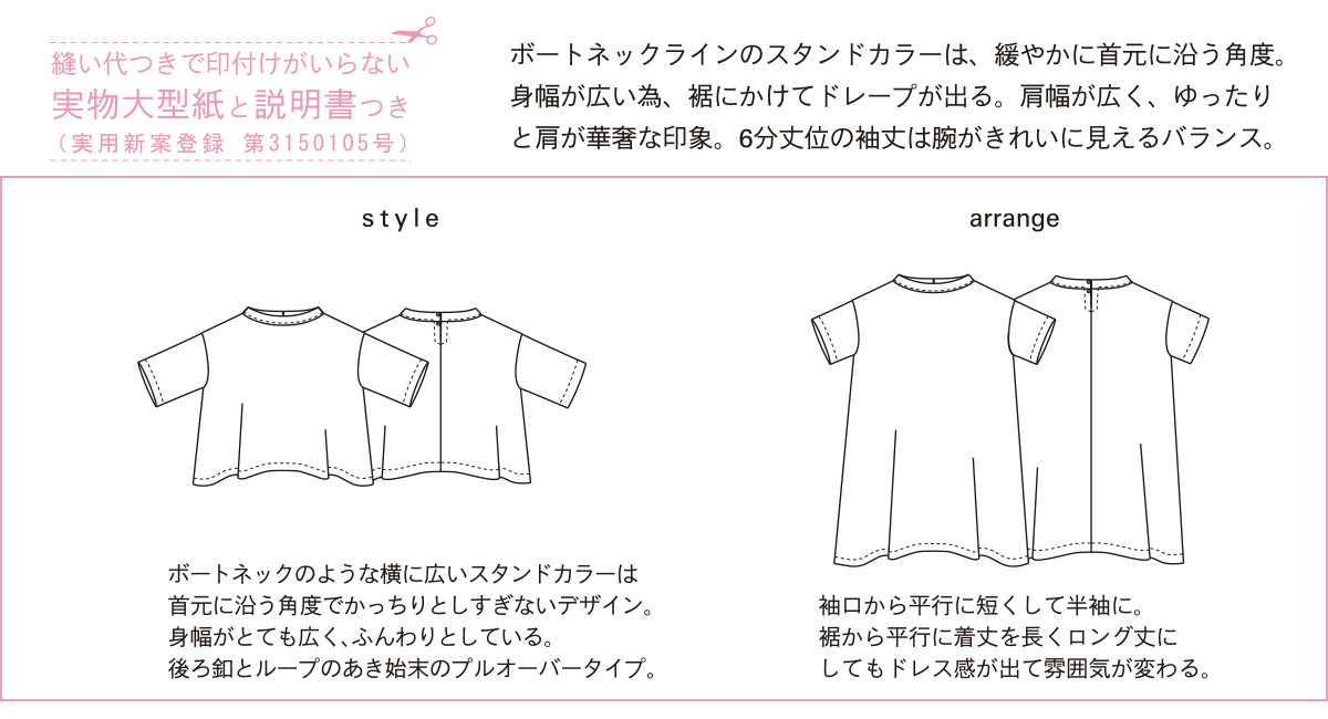 ●このパターンは、Mパターン研究所が企画・制作したパターンを、ジャノメミシン子会社「サン・プランニング社」が印刷・発行し、全国約700店の手芸専門店にて販売しております。Mパターン研究所がネット販売しておりません。お近くの手芸店でお買い求め下さい。
