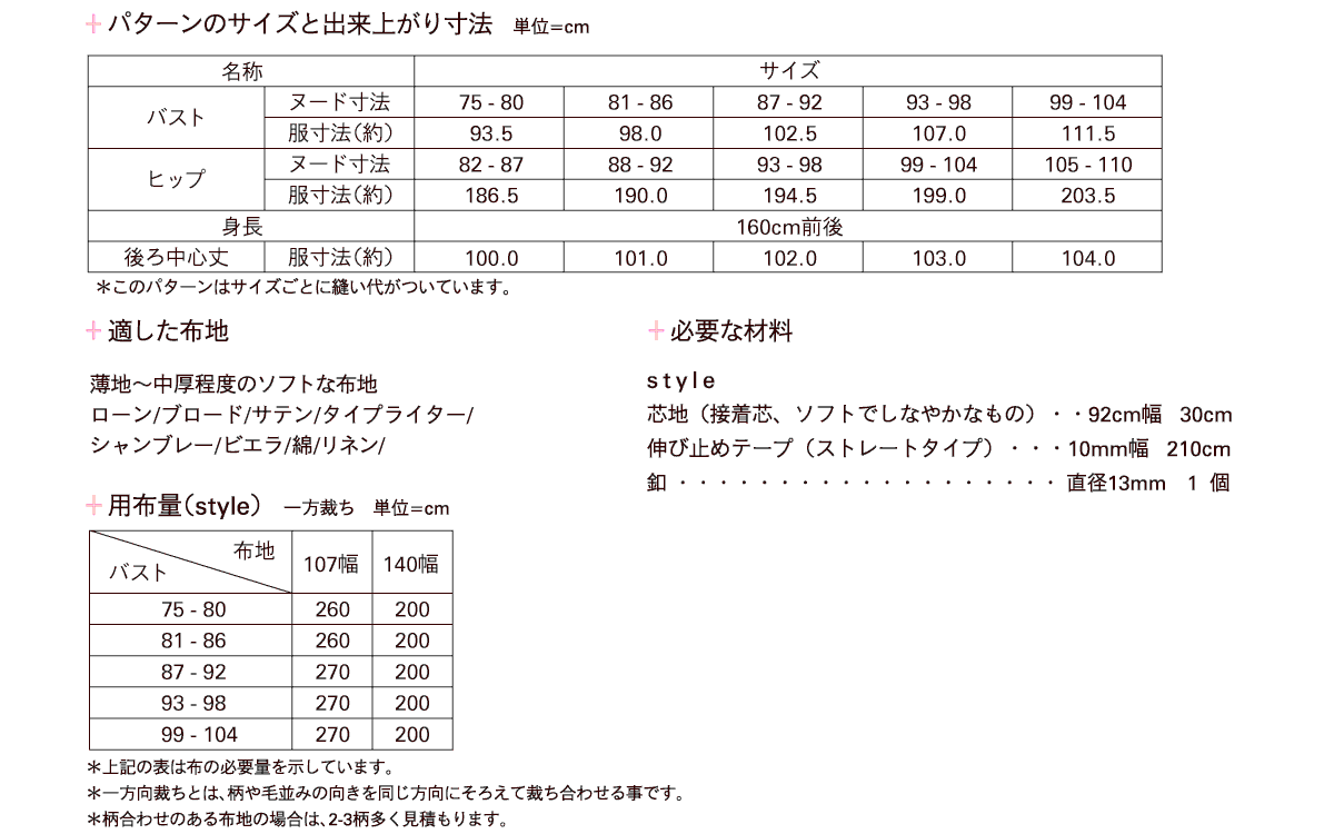 ●この商品は、ネット販売しておりますパターンと違い、1~3枚の紙に複数のサイズが印刷された実物大のパターンです。お客様ご自身でサイズを決定して頂き、、パターンをカットしてご使用下さい。