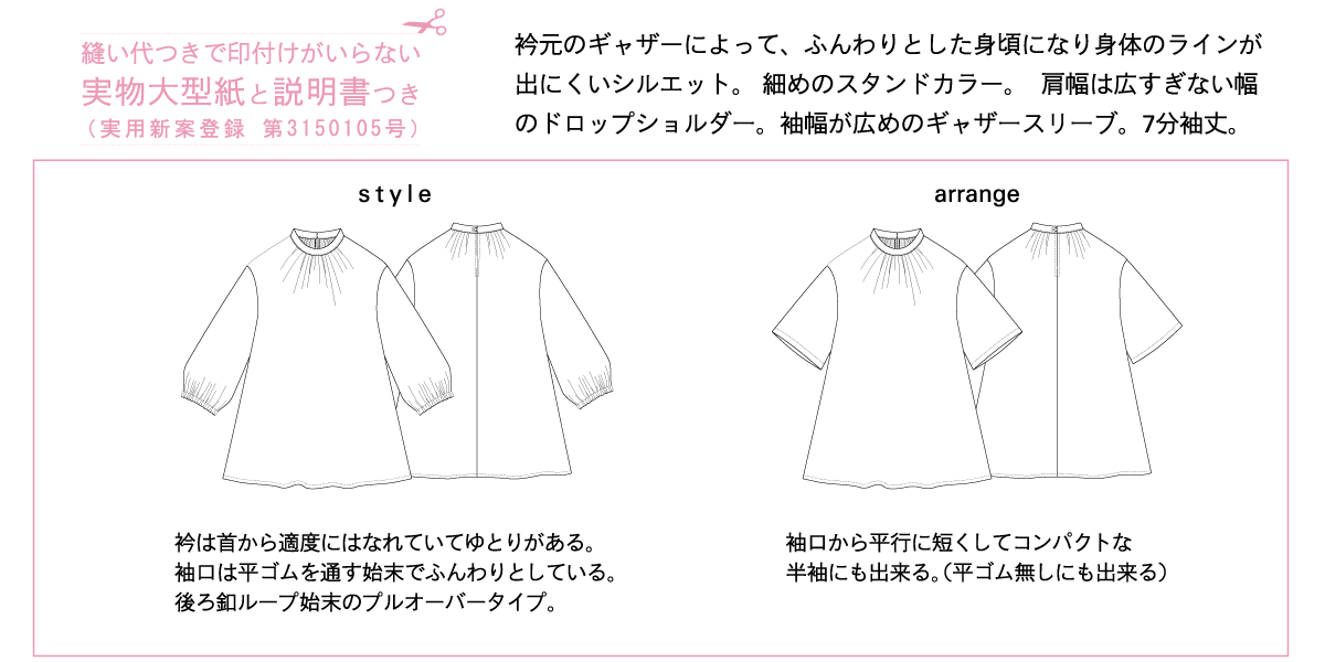 ●このパターンは、Mパターン研究所が企画・制作したパターンを、ジャノメミシン子会社「サン・プランニング社」が印刷・発行し、全国約700店の手芸専門店にて販売しております。Mパターン研究所がネット販売しておりません。お近くの手芸店でお買い求め下さい。