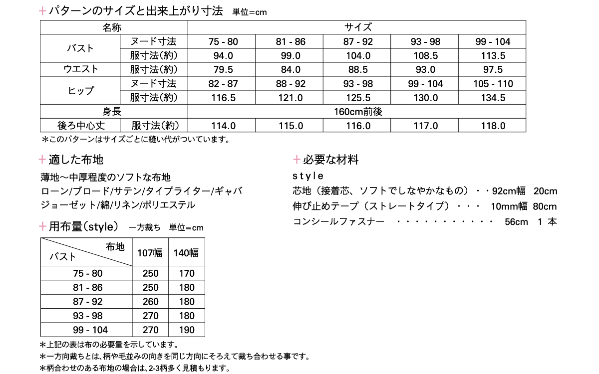 ●この商品は、ネット販売しておりますパターンと違い、1~3枚の紙に複数のサイズが印刷された実物大のパターンです。お客様ご自身でサイズを決定して頂き、、パターンをカットしてご使用下さい。