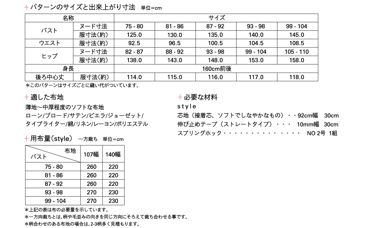 ●この商品は、ネット販売しておりますパターンと違い、1~3枚の紙に複数のサイズが印刷された実物大のパターンです。お客様ご自身でサイズを決定して頂き、、パターンをカットしてご使用下さい。
