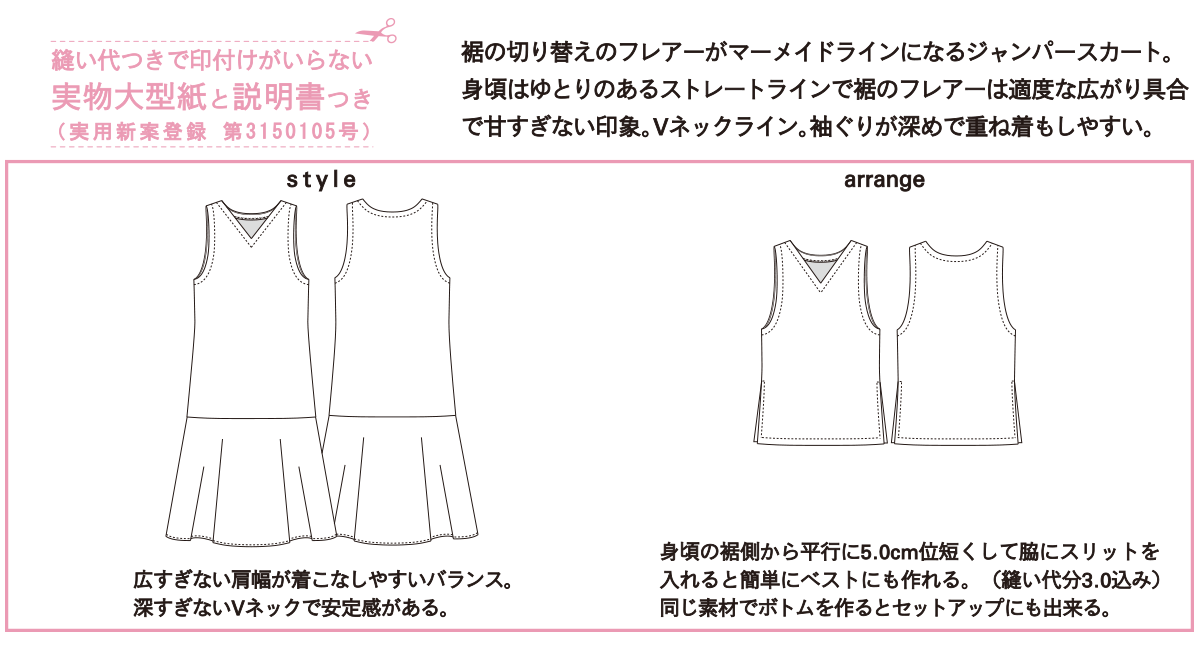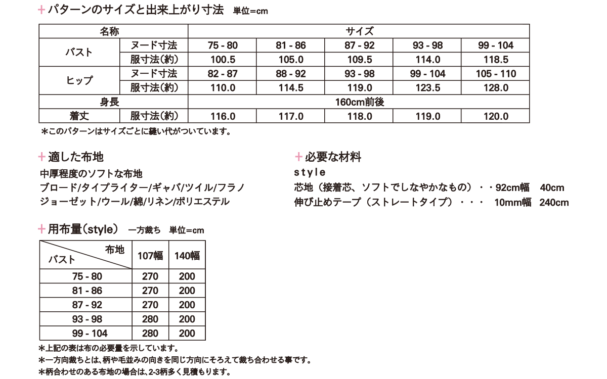 ●この商品は、ネット販売しておりますパターンと違い、1~3枚の紙に複数のサイズが印刷された実物大のパターンです。お客様ご自身でサイズを決定して頂き、、パターンをカットしてご使用下さい。