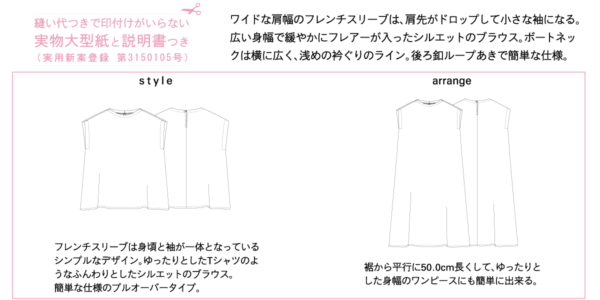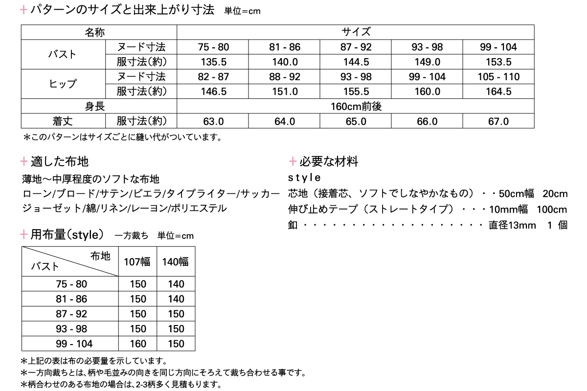 ●この商品は、ネット販売しておりますパターンと違い、1~3枚の紙に複数のサイズが印刷された実物大のパターンです。お客様ご自身でサイズを決定して頂き、、パターンをカットしてご使用下さい。