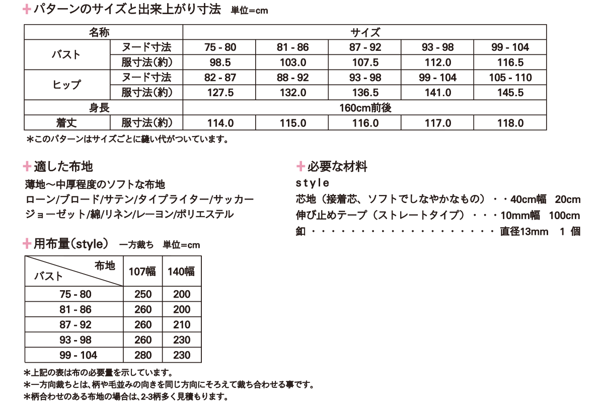 ●この商品は、ネット販売しておりますパターンと違い、1~3枚の紙に複数のサイズが印刷された実物大のパターンです。お客様ご自身でサイズを決定して頂き、、パターンをカットしてご使用下さい。