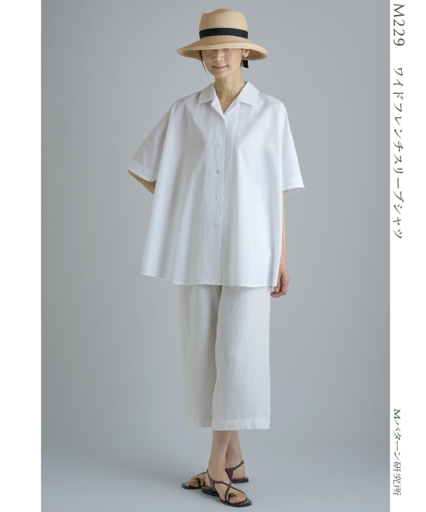パンツだけでなくギャザースカートとも相性が良いシャツだと思いました。