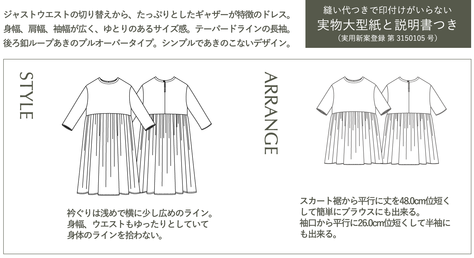 今回改めて、長袖できれいに見えるギャザーの分量、ウエストの位置、肩幅など細部にこだわって作りました。