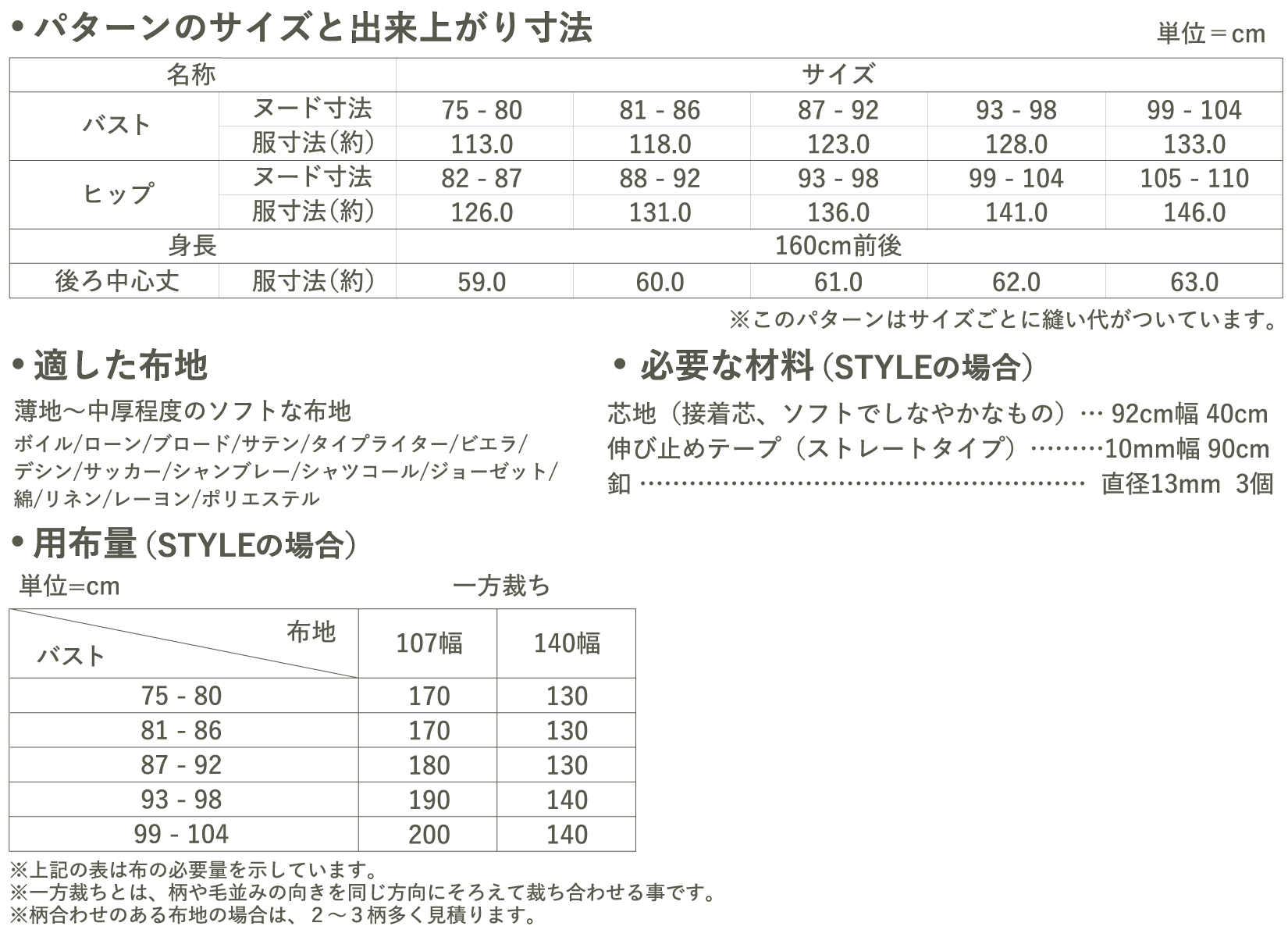 ●この商品は、ネット販売しておりますパターンと違い、1~3枚の紙に複数のサイズが印刷された実物大のパターンです。お客様ご自身でサイズを決定して頂き、、パターンをカットしてご使用下さい。